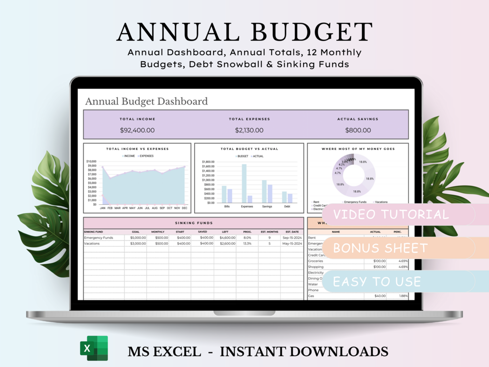 Annual Budget & Monthly Budget Spreadsheet For MS Excel