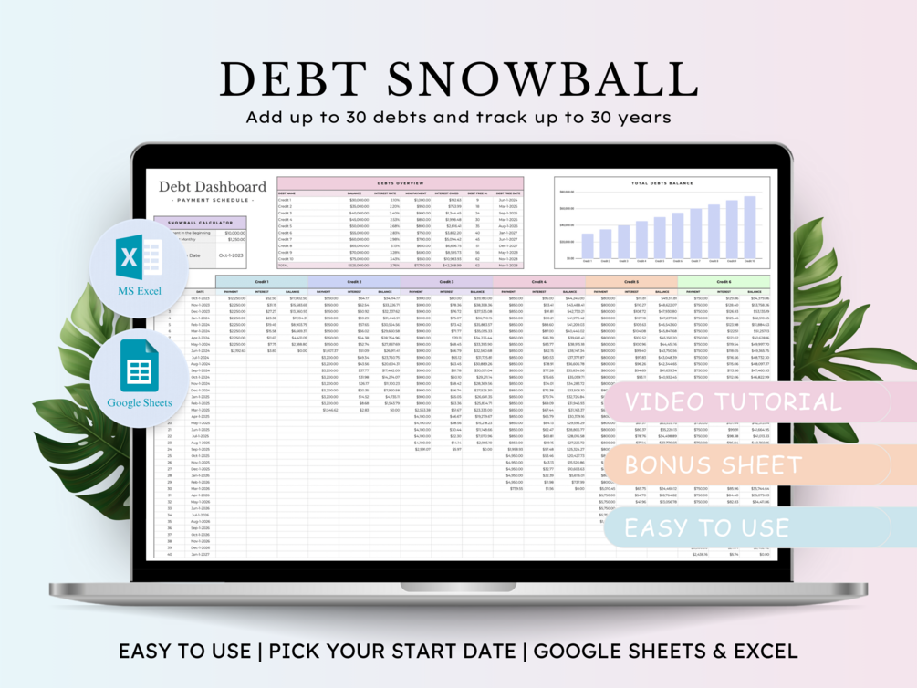 Dive into financial freedom with our Debt Snowball Calculator Spreadsheet Template for Google Sheets & Excel. Tailored to individuals seeking to efficiently manage and pay off their debts, this budget template is designed to simplify the complex process of debt repayment. With its user-friendly interface and comprehensive functionalities, this tool serves as a strategic companion on your journey to achieving a debt-free lifestyle.