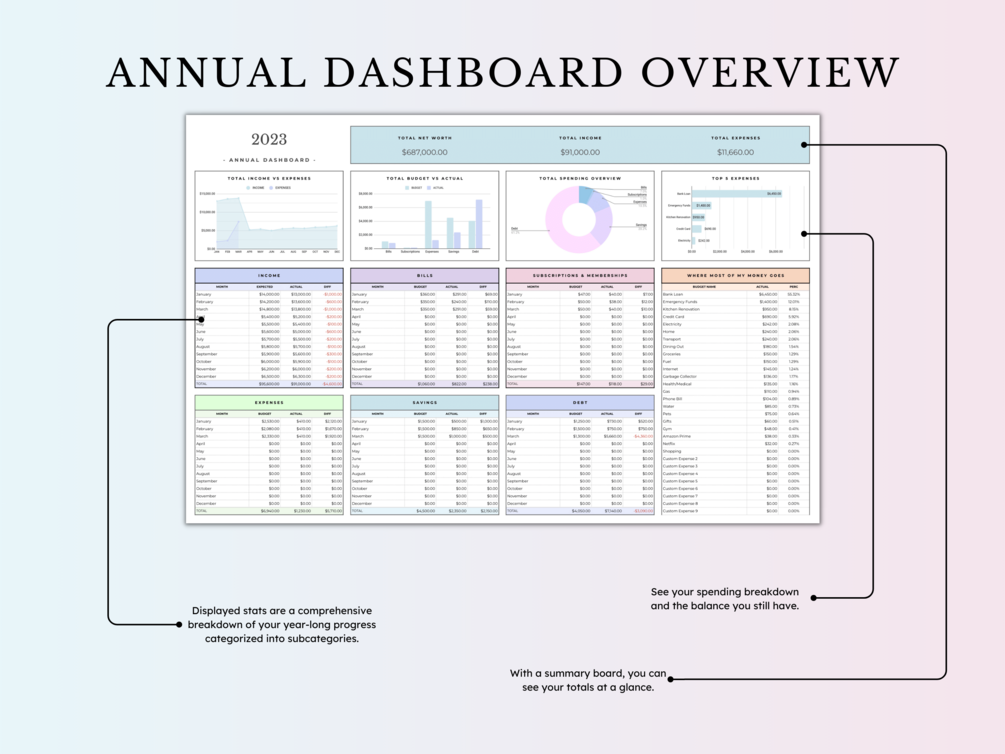 Ultimate Annual & Monthly Budget Spreadsheet Template for Google Sheets