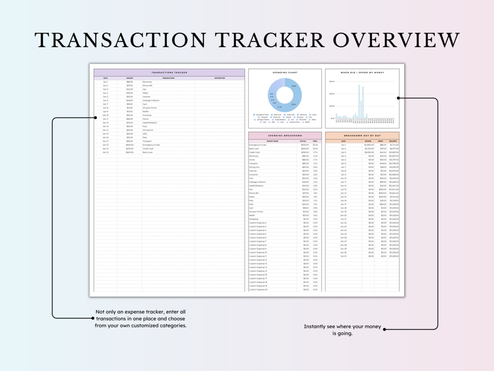 𝗧𝗿𝗮𝗻𝘀𝗮𝗰𝘁𝗶𝗼𝗻𝘀 𝗧𝗿𝗮𝗰𝗸𝗲𝗿: Effortlessly monitor and record your financial transactions, ensuring a comprehensive overview of your spending and income throughout the year.