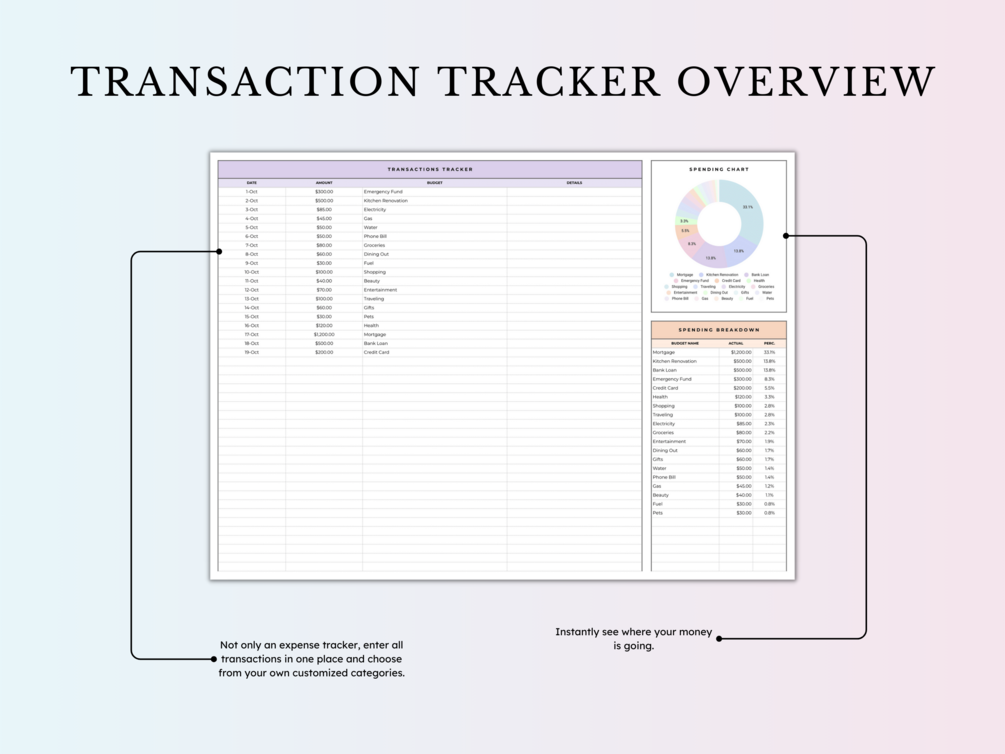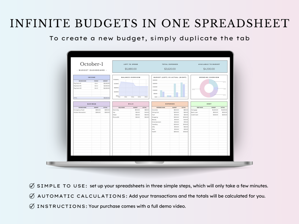 โข ๐ One tab design, easily duplicable for each new budget.
