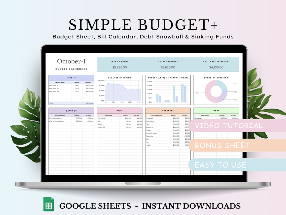 โข This budget template is only compatible with Google Sheets and not with Excel.