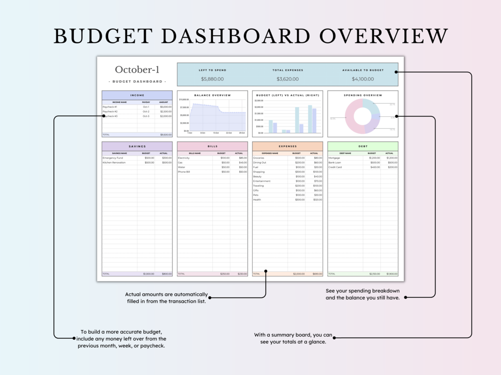 Start your financial journey with our user-friendly Budget Planner Spreadsheet. Simplify your budgeting process with our easy-to-use template, tailored for beginners and those ready to take control of their finances. Whether you're on a weekly budget, biweekly budget, monthly budget, or paycheck budget, this user-friendly budget template is ideal for beginners and smart savers as well.