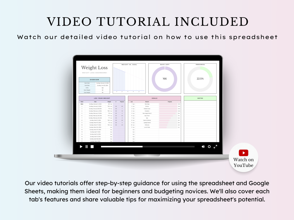 โข This Weight Loss Tracker is only compatible with Google Sheets and not with Excel.
