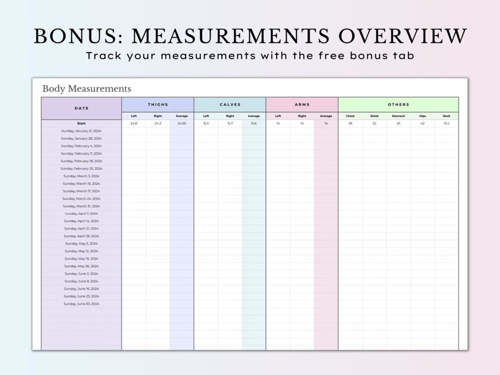 ๐๐ผ๐ฑ๐ ๐ ๐ฒ๐ฎ๐๐๐ฟ๐ฒ๐บ๐ฒ๐ป๐ ๐๐ผ๐ด: Easily monitor your body transformation journey with our Body Measurement Log Spreadsheet for Google Sheets. Set and achieve your fitness goals by tracking key body measurements conveniently in one place. Stay motivated on your path to success! ๐๐ช